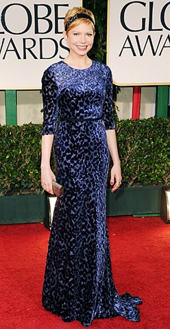 One of the best dressed stars of the night was “My Week with Marilyn” actress, Michelle Williams. Michelle looked ravishing in a classic red Valentino gown with an asymmetrical hemline and lace insets. The normally demure Williams turned heads in this sexy but feminine frock, and accessorized her ensemble with matching heels by Roger Vivier.