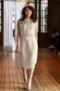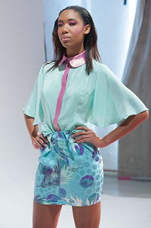Sheer collared blouses, high waisted skirts and sheaths were romantic but refined at AGAIN and Luciana Salamone.